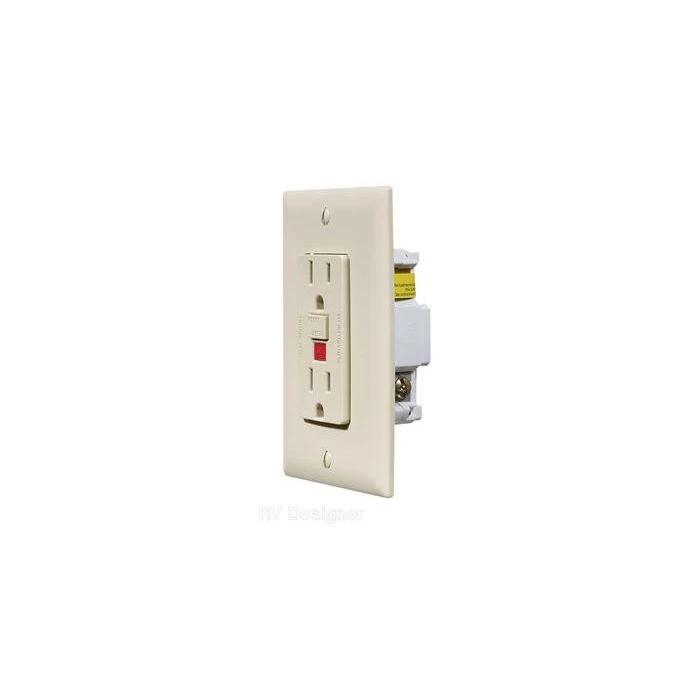 RV Designer Ivory GFCI Dual Outlet With Cover-Plate